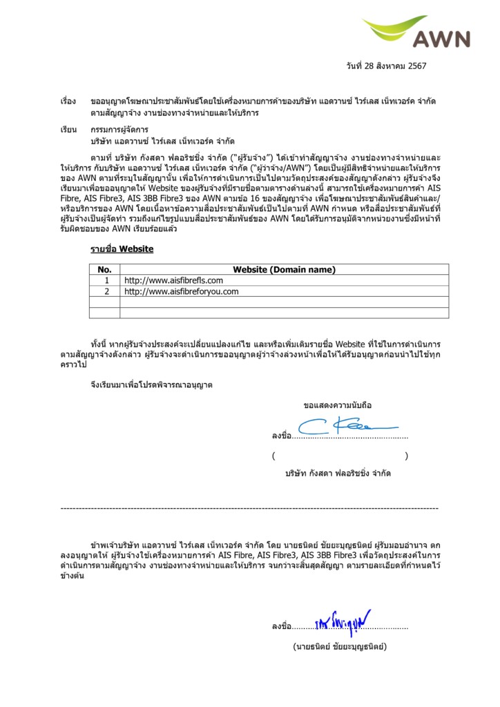 บริษัท แอดวานซ์ ไวร์เลส เน็ทเวอร์ค จำกัด (AWN)